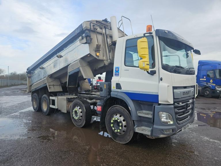 REF TG 3781 REG FD68RVN DAF CF 450 EURO 6 8X4 DAY CAB 200.000 KMS WARRANTED 32 TONNE GROSS DOUBLE DRIVE SPRING SUSPENSION ON BOARD WEIGHER ALLOY WHEELS FITTED WITH WILCOX ALUMINIUM TIPPING BODY EASY SHEET FRONT EDBRO TIPPING RAM ONE COMPANY OWNER VERY GOOD CONDITION NO VAT IF GOING FOR EXPORT REF TG 3781