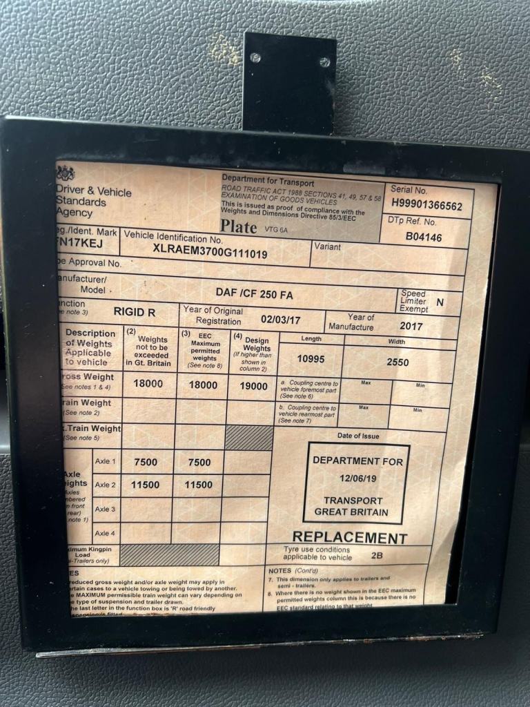 2017 Leyland Daf 250 FA Box Lorry 4x2