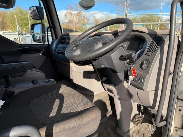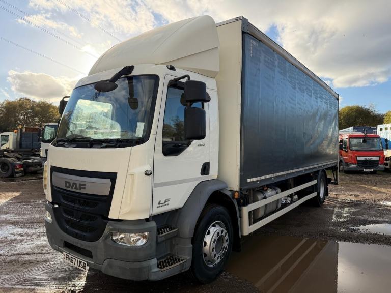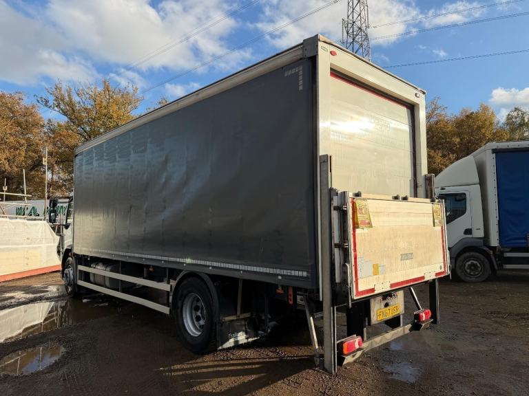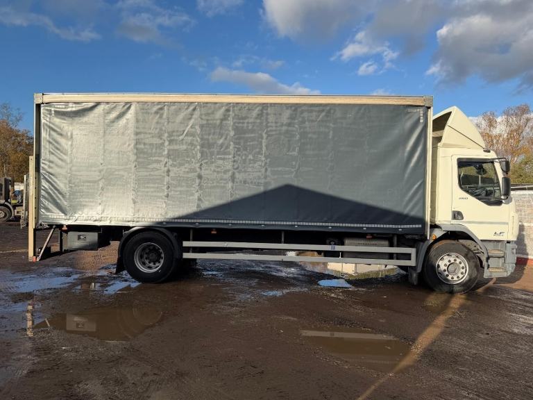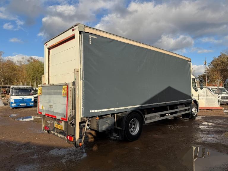DAF LF [Phone number removed]registration 18 ton curtain side truck with tail lift 1 owner from new day cab 18 ton gross vehicle weight 4x2 axle configuration 25ft curtains wide body with column tail lift 260bhp engine rear air suspension day cab cruise control electric windows 12 speed automatic gearbox