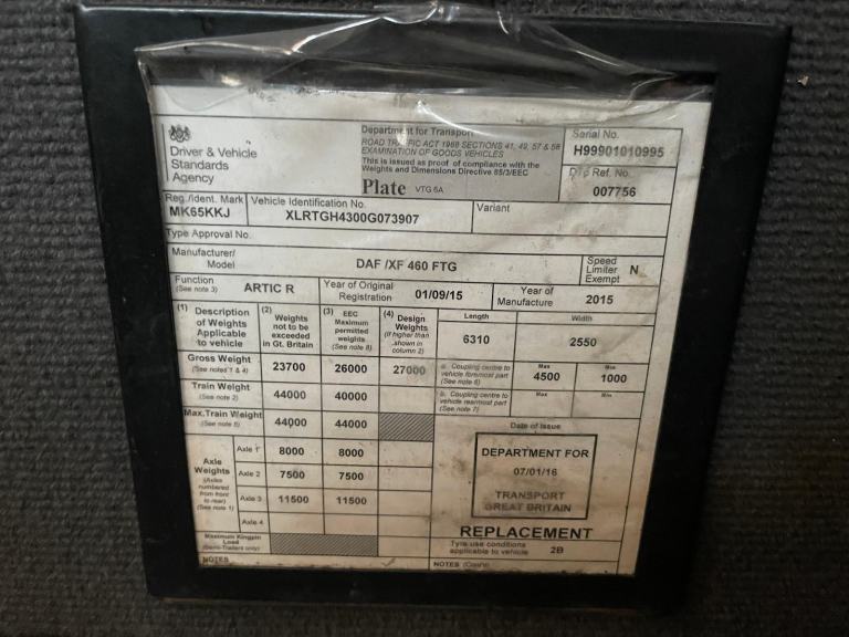 Posting for 3+ yearsDAF XF106 460 SUPERSPACE *EURO 6* 6X2 TRACTOR UNIT - 2015 - MK65 KKJ