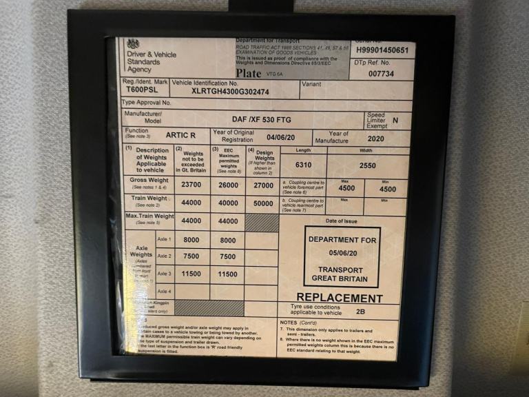Posting for 3+ yearsDAF XF106 530 SUPERSPACE *EURO 6* 6X2 TRACTOR UNIT – 2020 – WD20 LHR