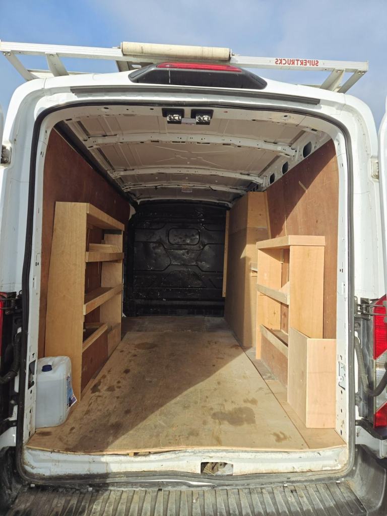 FORD TRANSIT 350 LEADER ECO BLUE 2020 (20) EURO 6, PANEL VAN, SIDE LOADING DOOR, MANUAL GEARBOX, FULL LENGTH ROOF RACK, PLYLINED, SHELVING, 3 SEATS, STEERING WHEEL CONTROLS, BLUETOOTH, 66,000 MILES, JULY 26 TEST.
