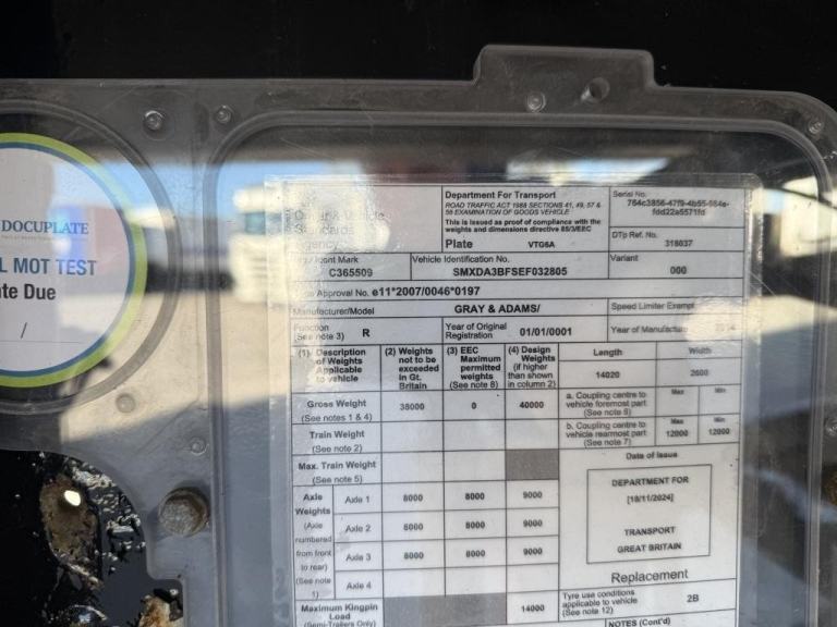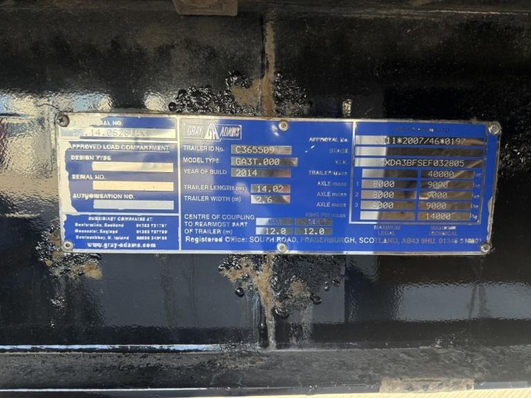 2014 Gray & Adams Multi Temp Fridge Trailer. 4000MM Height, Tri Axle, BPW Axles, Drum Brakes, Jost Landing Legs, Carrier Vector i950MT Motor, Sliding Suzy Boom, Side Guards, Rear Barn Doors, 2.46M Internal Width,2.8Mt Internal Height. Good Condition