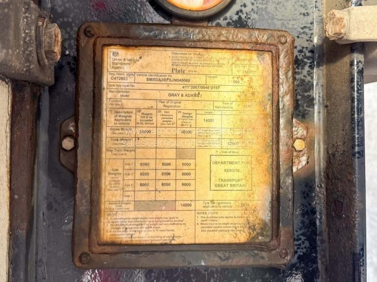 2018 Gray & Adams 4650MM Mono Temp Duplex Fridge Trailer, Tri Axle, Recessed Vertical Rails, Duplex Beams, Vector 1550 Fridge Unit, Jost Landing Legs, SAF Axles, Drum Brakes, Rear Barn Doors, Side Guards, HALDEX Braking System, 2.5M Internal Width, 3M Internal Height, 6966 Engine Hours, Finance Available Subject to Status.