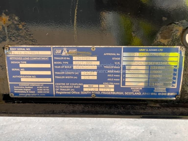 2014 GRAY & ADAMS Twin Evap Tandem Axle Urban Fridge Trailer, VECTOR 1950 Fridge Unit, BPW Drum Axles, Tool Box, Tail Lift, Internal Partition/Divider, Rear Roller Shutter Door, 2.6M Height, 2.2M Width, Good Condition for The Year, MOT 30th September 2026, 14553 HOURS, Finance Available Subject to Status.