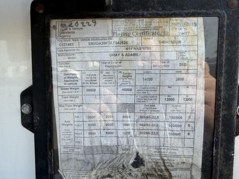 2020 Gray & Adams Twin Temp Fridge, Bpw Axles, X2 Rows Of Load Locks, Carrier Motor, Full Aluminium Floor,2.55Mt Internal Height,2.478Mt Internal Width,2.376Mt Under Evap, Fleet Owned Well Looked After Will Come With A Full Years Mot,15898 Engine Hours, Finance Available Subject To Status!
