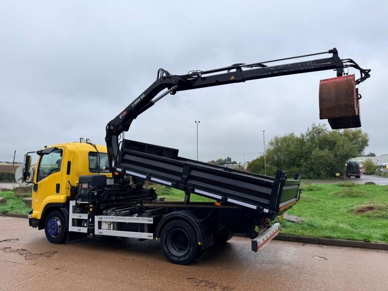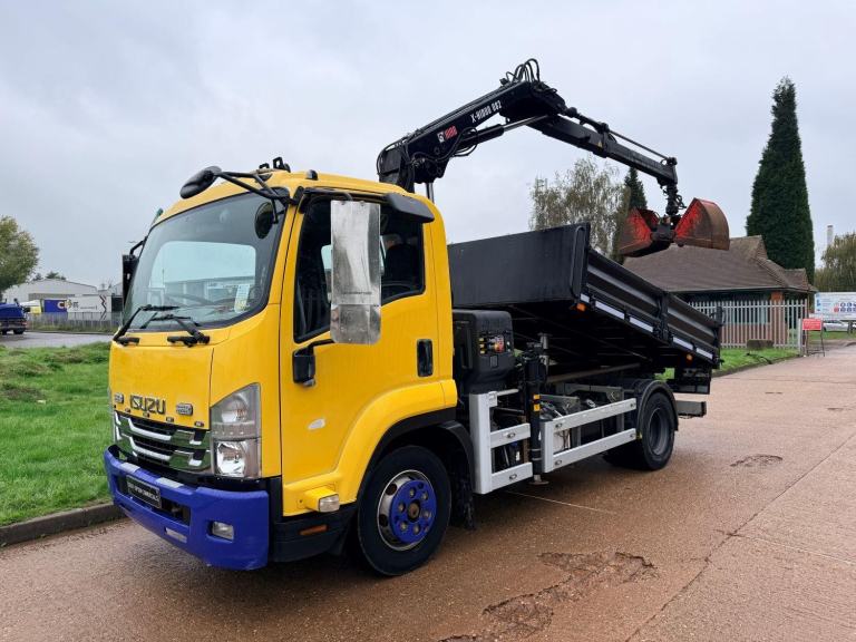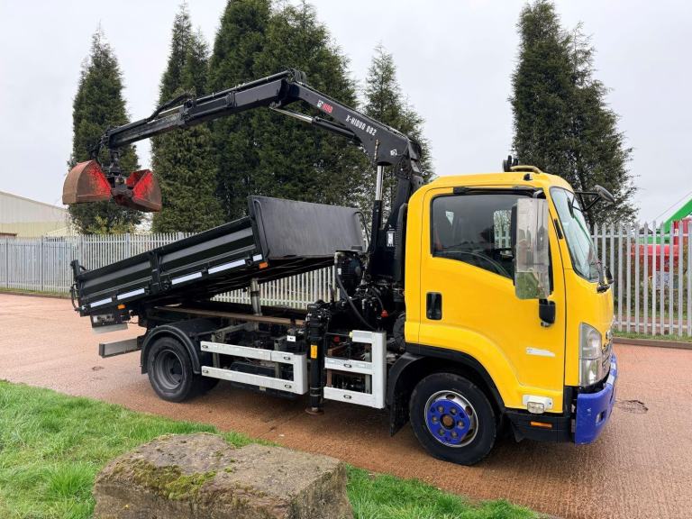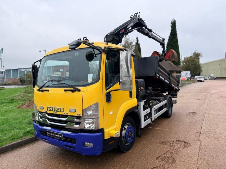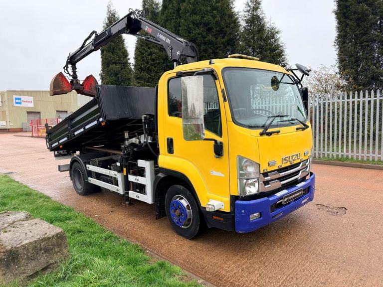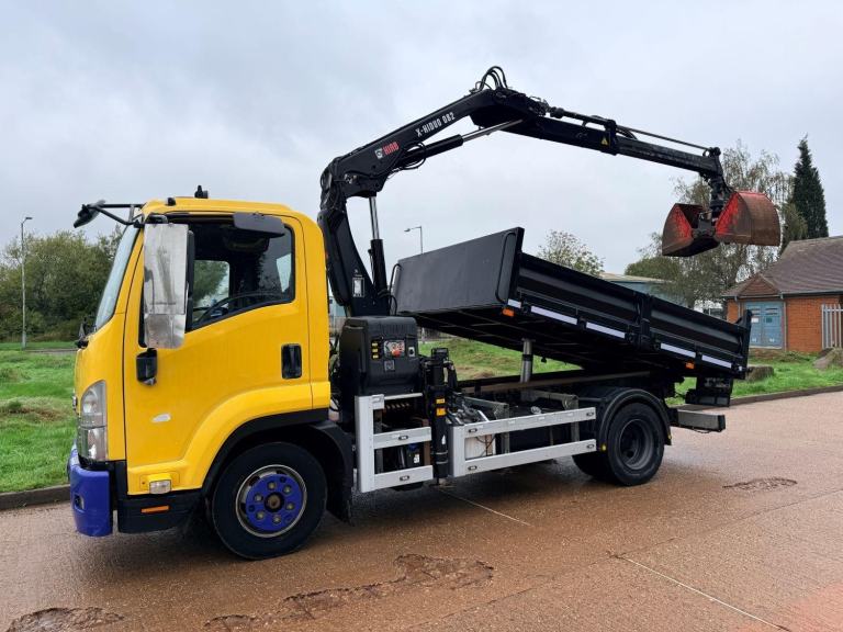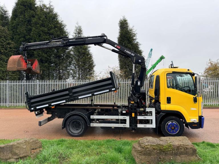 ISUZU FORWARD F110 210 2021 (21) EURO 6, 11 TON, DAY CAB, 10' 11" DOUBLE DROPSIDE TIPPER, ALI SIDES, HIAB X-HIDUO 082 FOLDAWAY CRANE, 1 EXTENSION, HYDRAULIC PUSH OUT LEGS, N/S STAND UP CONTROLS, UNDERFLOOR TIPPING GEAR, AUTO GEARBOX, CRUISE CONTROL, LANE ASSIST, LED LIGHTS, REAR SPOT LIGHTS, BEACONS, MIRROR GUARDS, AIR CON, ELECTRIC WINDOWS / MIRRORS, CD, STEEL SUSPENSION, 83,000 MILES, JUNE 26 TEST.