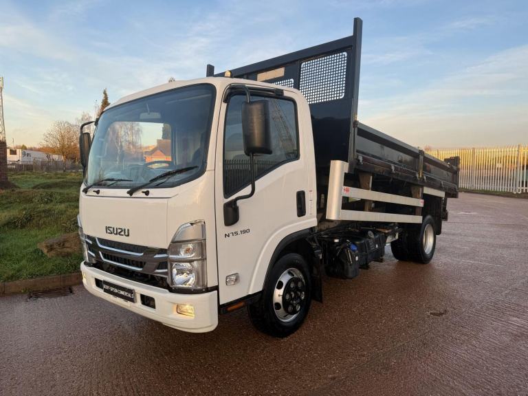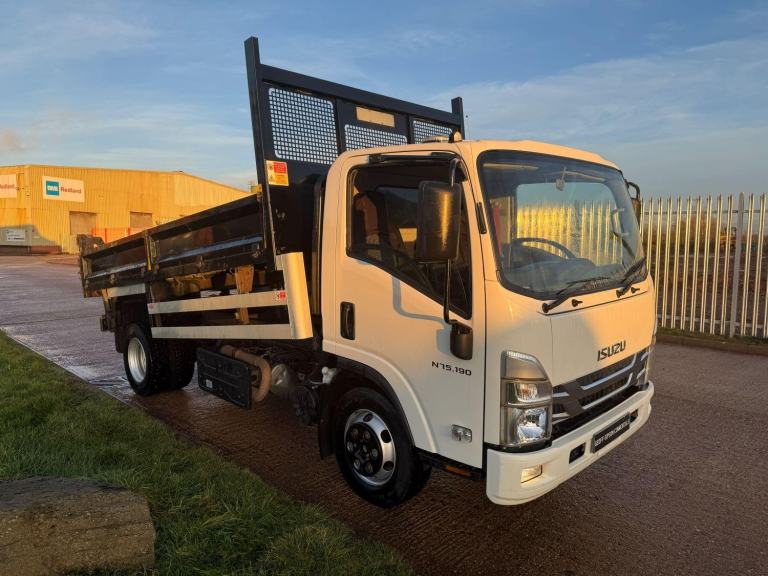 ISUZU FORWARD N75 190 2023 EURO 6, DAY CAB, 7.5 TON TIPPER, 13' DOUBLE DROPSIDE BODY, BRIT TIPP IN CAB CONTROLS, UNDERFLOOR TIPPING GEAR, AUTO GEARBOX, CRUISE CONTROL, REAR LIGHT GUARDS, LANE ASSIST, 3 SEATS, CD/RADIO, STEEL SUSPENSION, 90% TYRES, LARGE 190 HP ENGINE, ONE OWNER, 79,000 MILES, DEC 26 TEST.