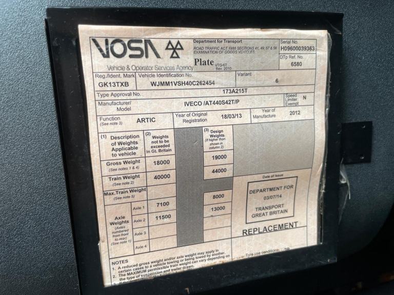 Posting for 3+ yearsIVECO STRALIS 420 EURO 5 4X2 TRACTOR UNIT – 2013 – GK13 TXB