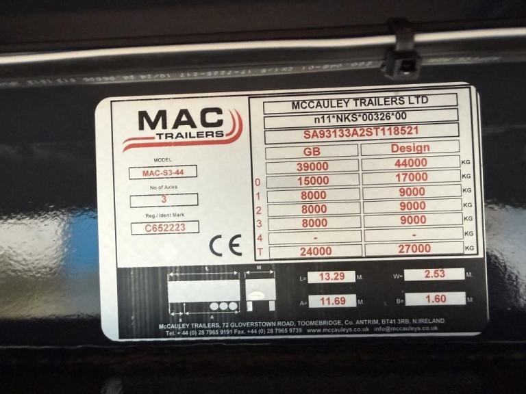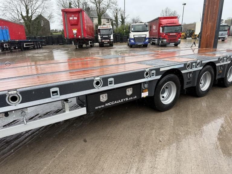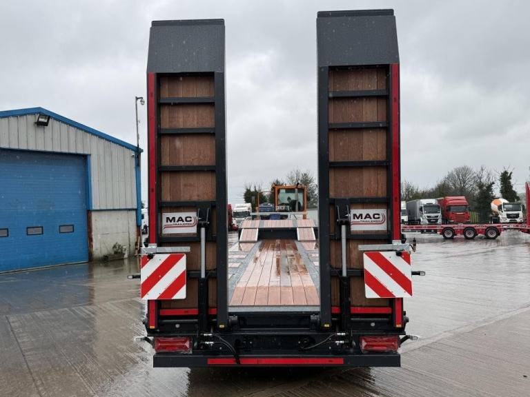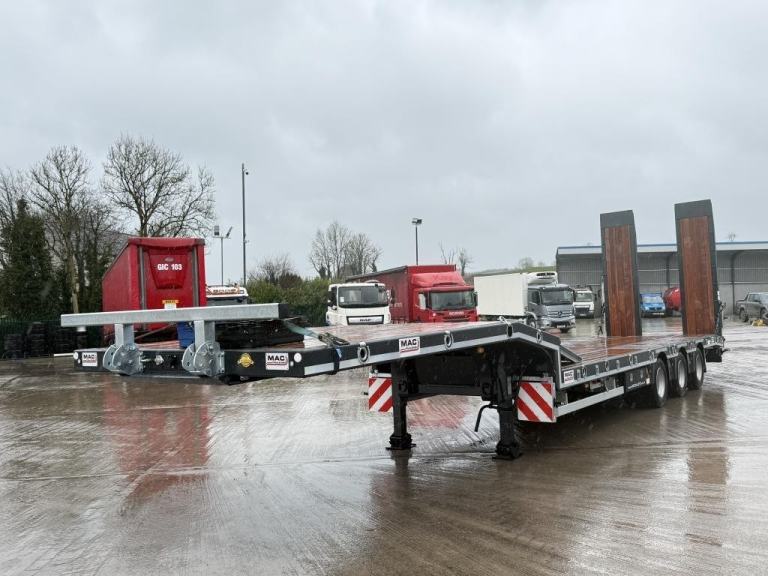 Brand New McCauley MAC-S3-44 Low Loader. Tri-Axle with Air Suspension, BPW Drum Brakes, Hydraulic Ramps with side shift, Neck Ramps, Rear Lift Axle, Outriggers and Led Lighting. Galvanised Headboard With Front T Bar, Wide Load Marker. 44000 GVW Design, Chequer Plates Over Axles, Hardwood Floor, Powder Coated Toolbox, Wabco Braking System. Choose From A Range Of Colours To Customise Your Transport Solution. Finance Available subject to status.