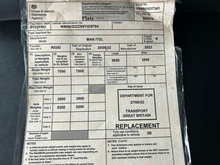 Posting for 9+ yearsMAN TGL 8.190 7.5-TONNE DROPSIDE FLAT 2022 – BV22 FRO