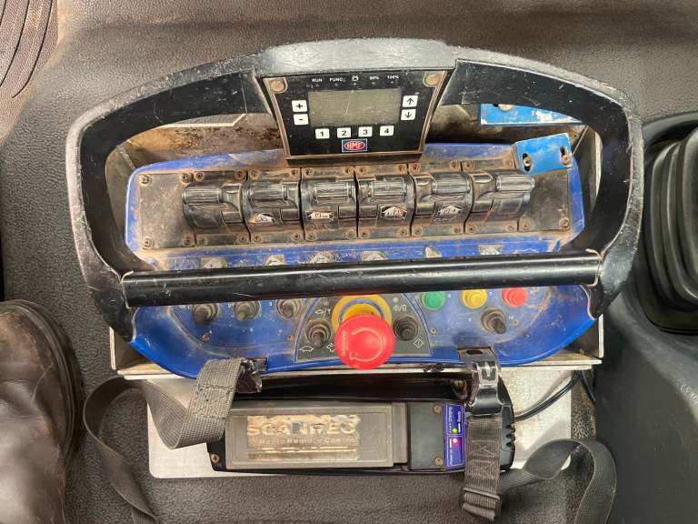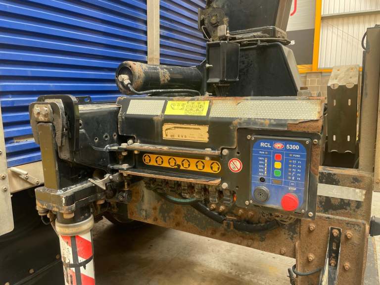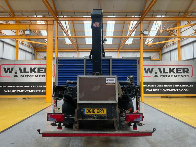 Gearbox Driven HMF 1430 Rear Mounted Crane C/w Remote Controls, Hydraulic Stabiliser Legs And Rotating Brick Grab.