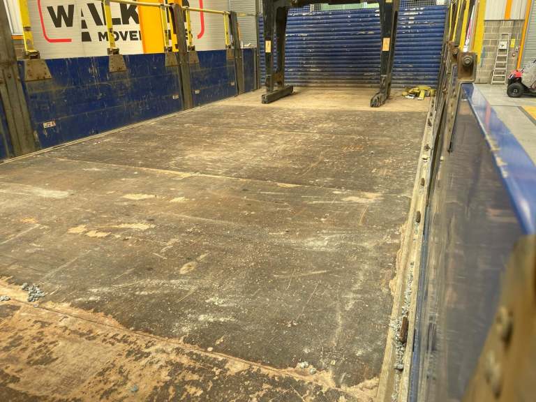 19Ft 6ins Flatbed Body C/w Wood Panel Flooring, Raised Headboard And Aluminium Dropsides.