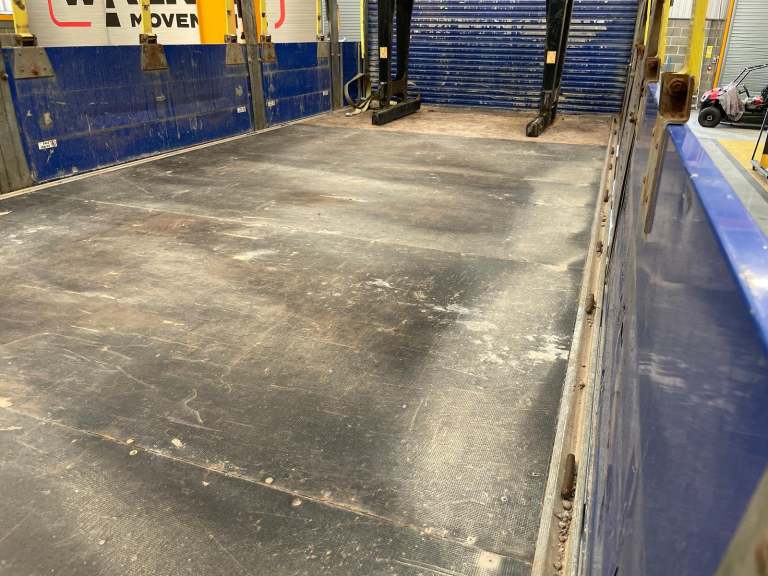 19Ft 6ins Flatbed Body C/w Wood Panel Flooring, Raised Headboard And Aluminium Dropsides.