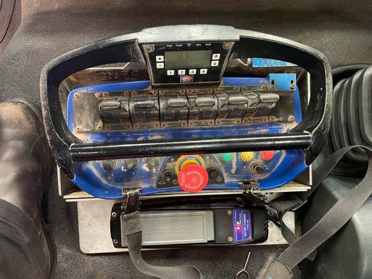 Gearbox Driven HMF 1430 Rear Mounted Crane C/w Remote Controls, Hydraulic Stabiliser Legs And Rotating Brick Grab.