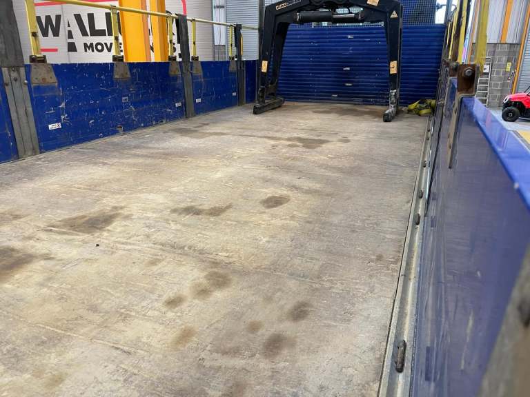 19Ft 6ins Flatbed Body C/w Wood Panel Flooring, Raised Headboard And Aluminium Dropsides.