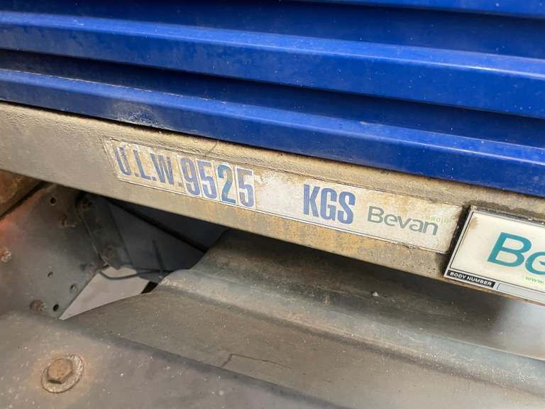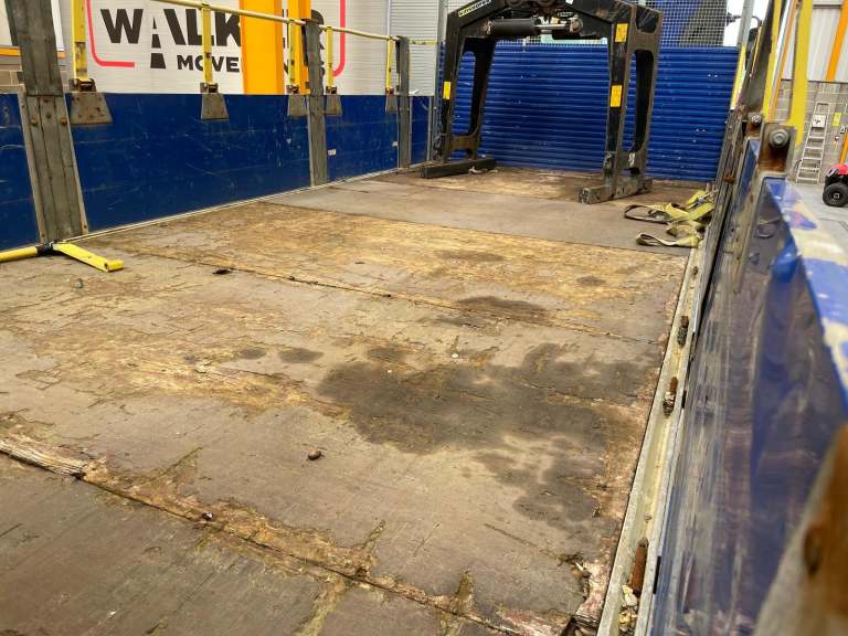 19Ft 6ins Flatbed Body C/w Wood Panel Flooring, Raised Headboard And Aluminium Dropsides.