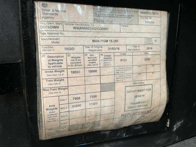 Posting for 3+ yearsMAN TGM 18.250 *EURO 6*, 4X2 18 TONNE BRICK GRAB