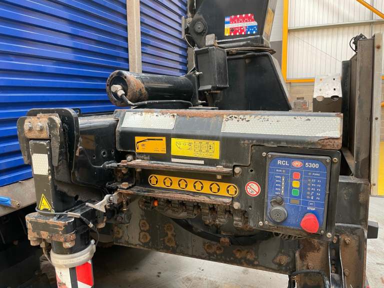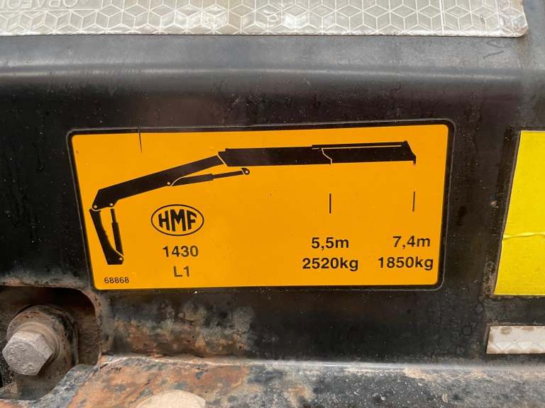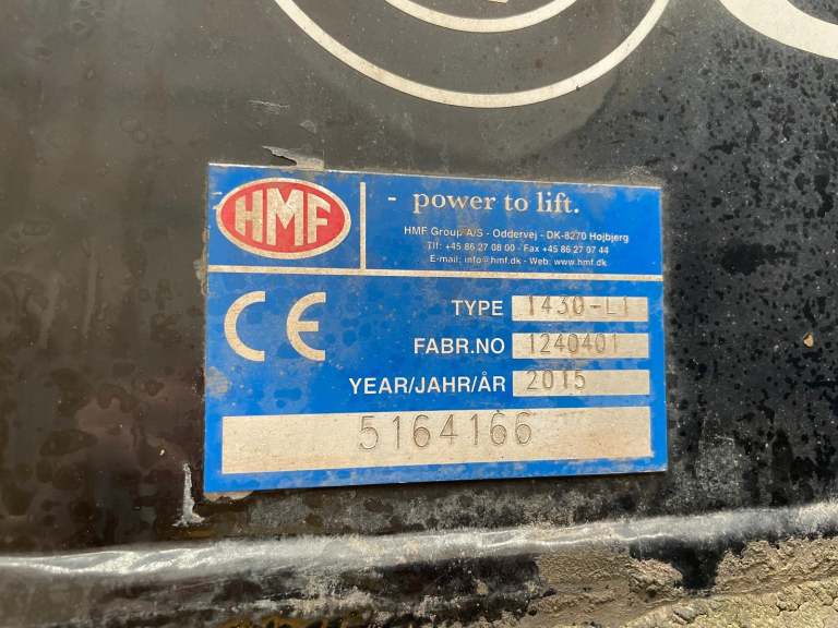 Gearbox Driven HMF 1430 Rear Mounted Crane C/w Remote Controls, Hydraulic Stabiliser Legs And Rotating Brick Grab.