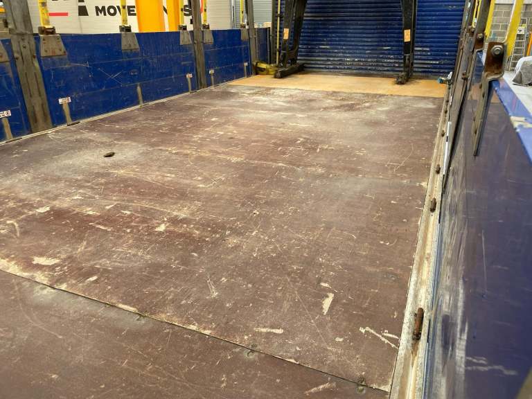 19Ft 6ins Flatbed Body C/w Wood Panel Flooring, Raised Headboard And Aluminium Dropsides.