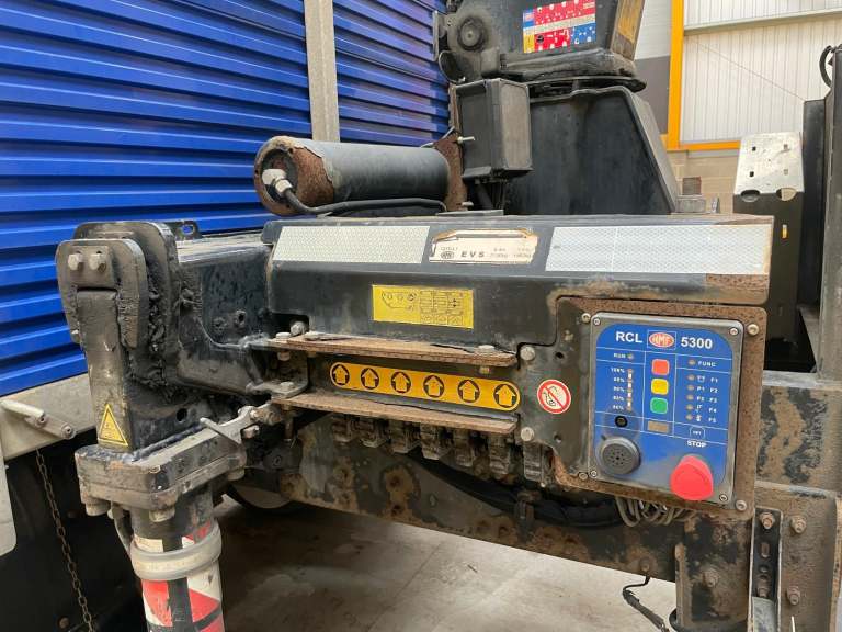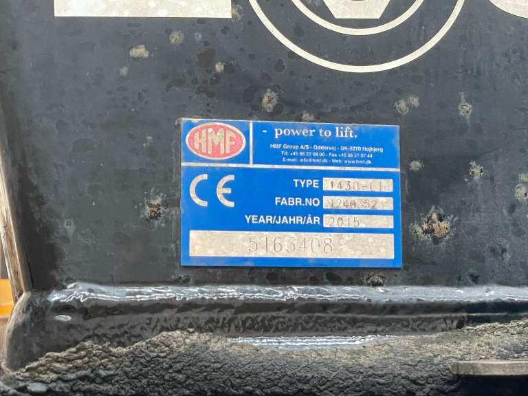 Gearbox Driven HMF 1430 Rear Mounted Crane C/w Remote Controls, Hydraulic Stabiliser Legs And Rotating Brick Grab.