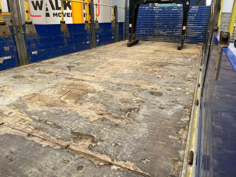 19Ft 6ins Flatbed Body C/w Wood Panel Flooring, Raised Headboard And Aluminium Dropsides.