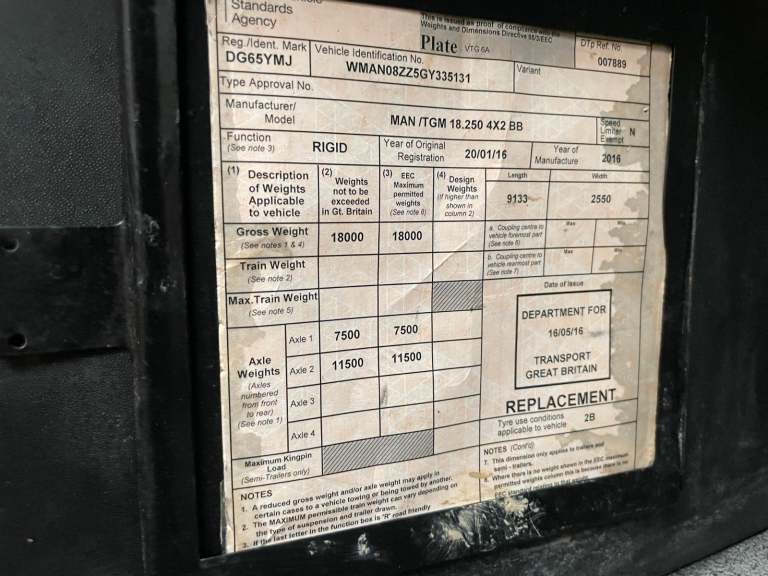 Posting for 3+ yearsMAN TGM 18.250 *EURO 6*, 4X2 18 TONNE BRICK GRAB