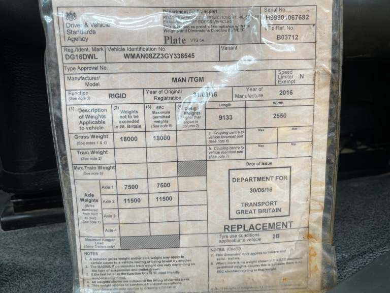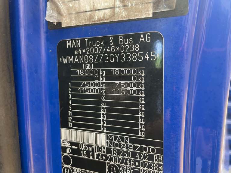 Posting for 3+ yearsMAN TGM 18.250 *EURO 6*, 4X2 18 TONNE BRICK GRAB – 2016 – DG16 DWL