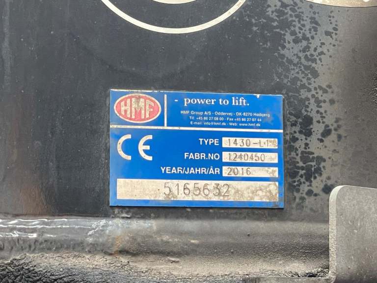 Gearbox Driven HMF 1430 Rear Mounted Crane C/w Remote Controls, Hydraulic Stabiliser Legs And Rotating Brick Grab.