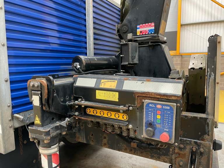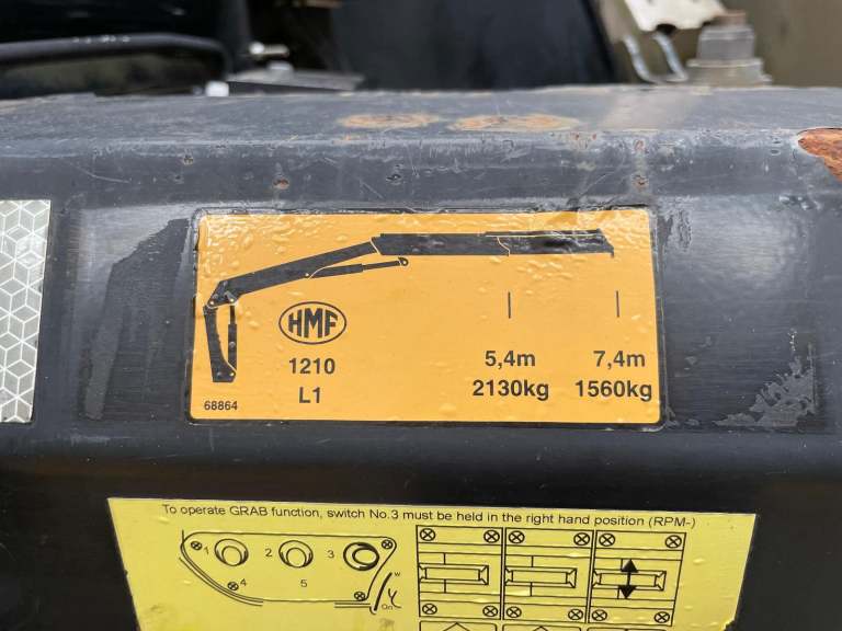 Gearbox Driven HMF 1430 Rear Mounted Crane C/w Remote Controls, Hydraulic Stabiliser Legs And Rotating Brick Grab.