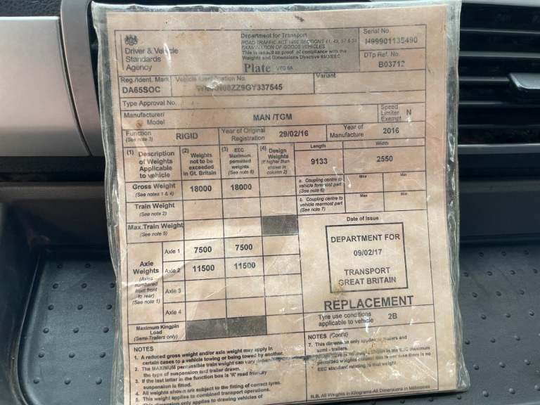 Posting for 3+ yearsMAN TGM 18.250 *EURO 6*, 4X2 18 TONNE BRICK GRAB