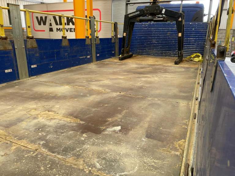 19Ft 6ins Flatbed Body C/w Wood Panel Flooring, Raised Headboard And Aluminium Dropsides.