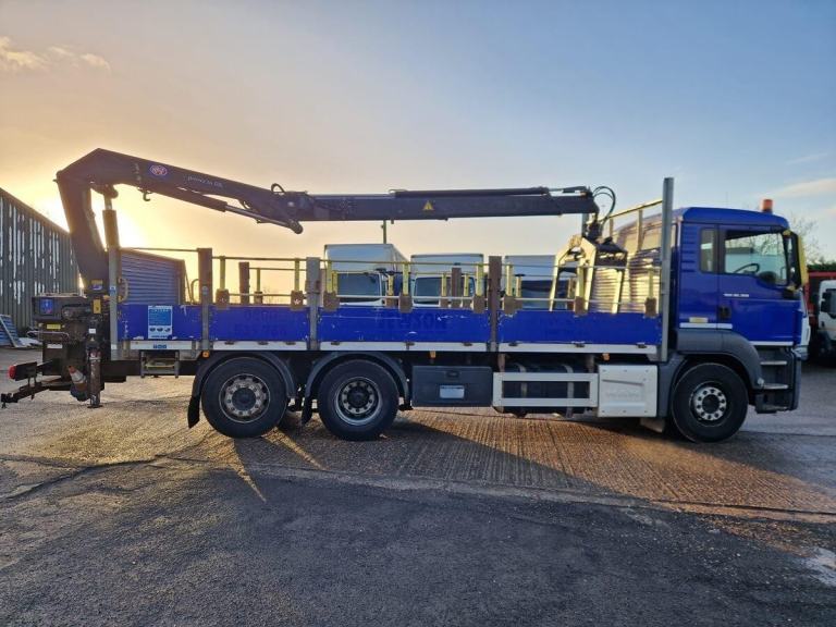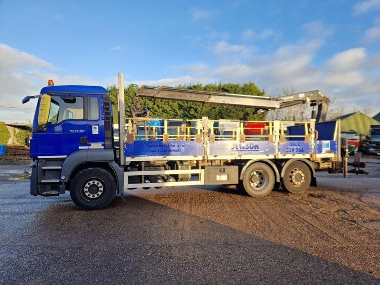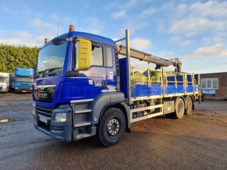 Man TGS 26.360, 2017, 22ft Dropside Body with HMF 1420 Crane and Brick Grab, 26 Tonner, 8 Speed Manual Gearbox, 6x2 Rear Lift axle, Day Cab, Diff Lock, Lane Departure System, Cruise Control, Electric Windows and Mirrors, Heated Mirrors, Phone Kit, Beacons, Reverse Camera, Good Tyres all round.