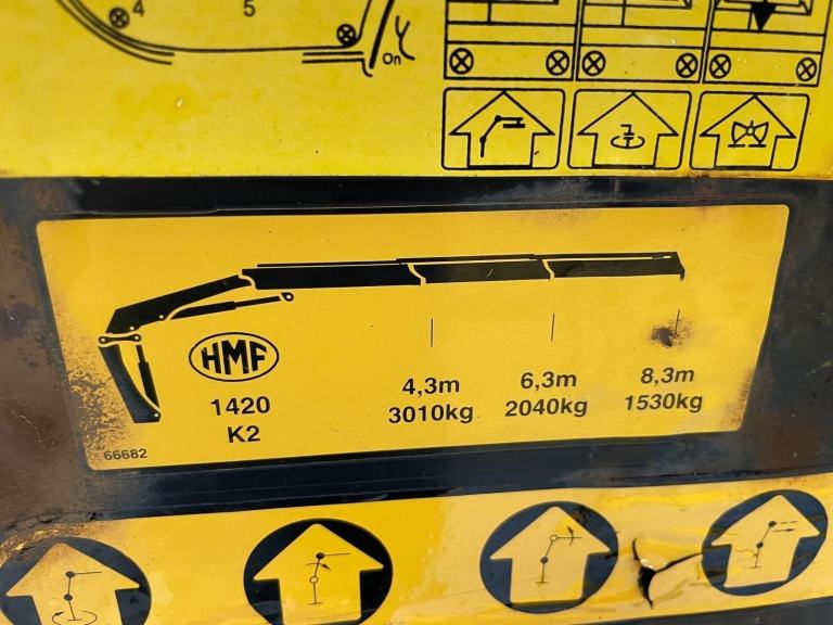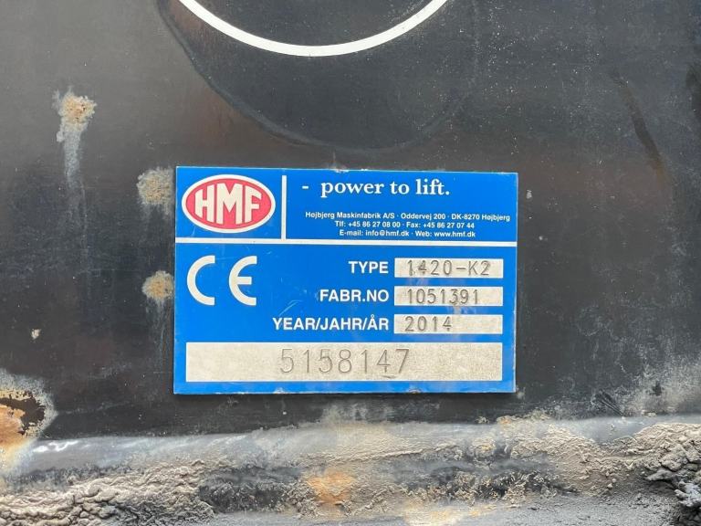 Gearbox Driven HMF 1420 Rear Mounted Crane C/w Remote Controls, Twin Hydraulic Stabiliser Legs And Rotating Brick Grab.