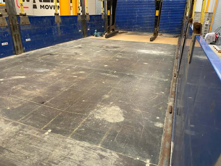 21Ft 6ins Flatbed Body C/w Wood Panel Flooring, Raised Headboard And Aluminium Dropsides.