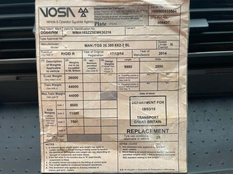 Posting for 3+ yearsMAN TGS 26.360, 6X2 26 TONNE DRAWBAR SPEC BRICK GRAB – 2014 – DG64 VNM