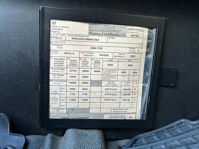 Posting for 9+ yearsMAN TGX 26.510 *EURO 6* XLX 6X2 TRACTOR UNIT 2020 – EY70 LLZ
