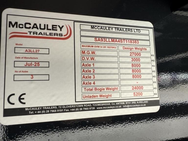 2026 MAC A3LL27 – 3 Axle Agri Lowloader, Brand new agricultural spec trailer featuring: