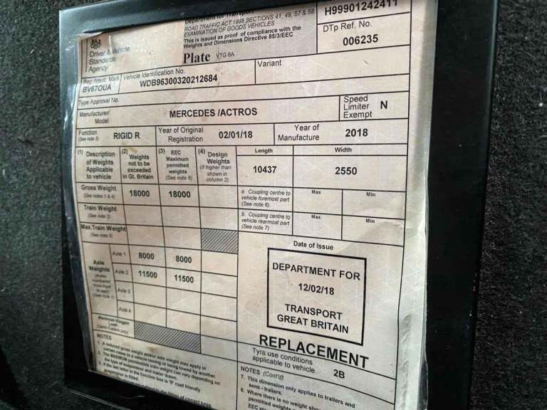 Posting for 9+ yearsMERCEDES ACTROS 1824 *EURO 6* 4X2 DEMOUNT CHASSIS CAB 2018 - BV67 OUA