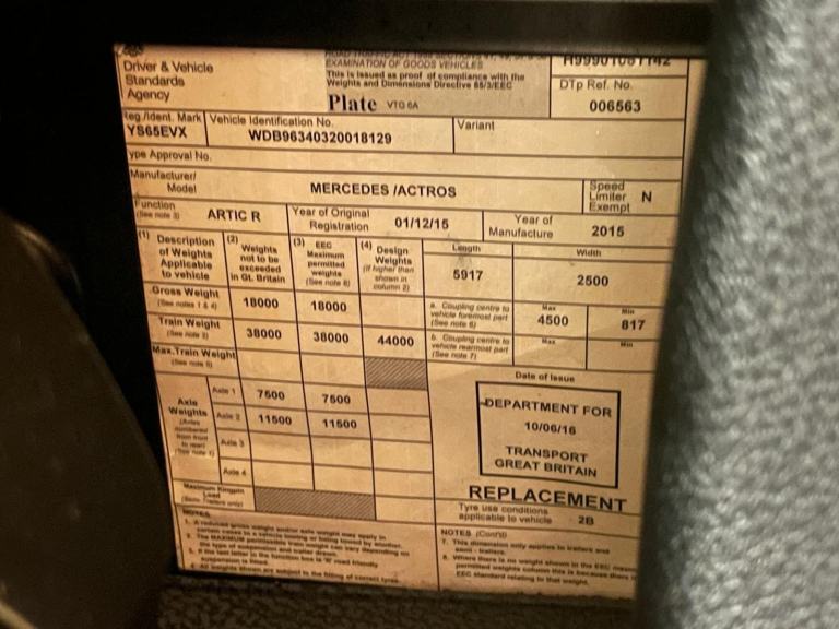 Posting for 3+ yearsMERCEDES ACTROS 1840 *EURO 6* 4X2 TRACTOR UNIT – 2015 – YS65 EVX