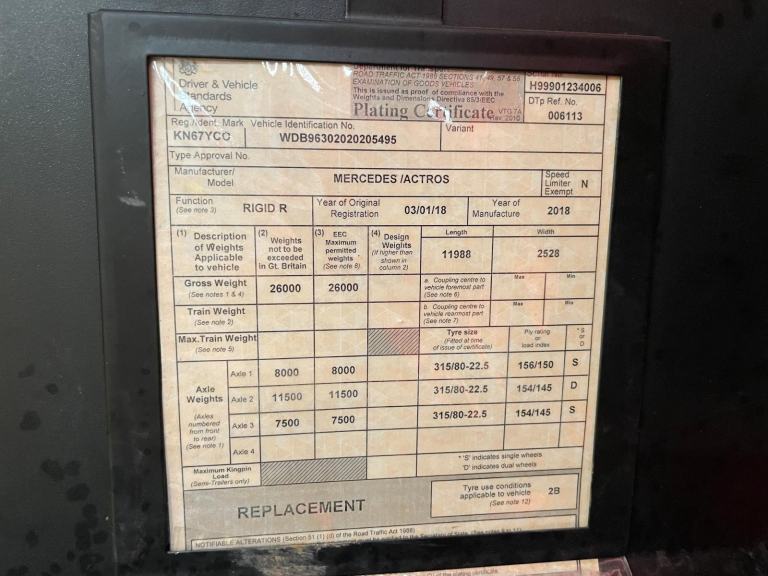 Posting for 3+ yearsMERCEDES ACTROS 2532 *EURO 6* ACTROS 6X2 PSK FLATBED - 2018 - KN67 YCO