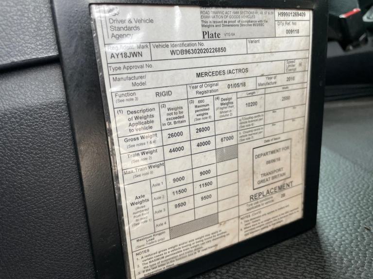 Posting for 3+ yearsMERCEDES ACTROS 2546 *EURO 6* 6X2 DRAWBAR OUTFIT BRICK GRAB – 2018 – AY18 JWN