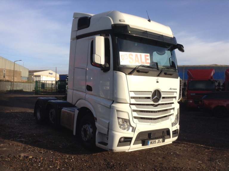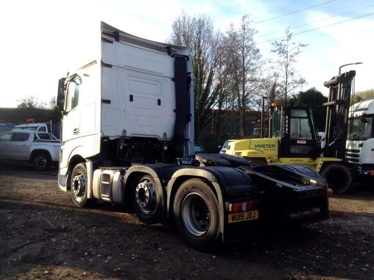 REF TG 3613 REG WU19JDJ MERCEDES BENZ ACTROSS 2545 EURO 6 6X2 SLEEPER CAB LOW MILEAGE GIGA SPACE CAB CAMERA SYSTEM AIR CON MID LIFT AXLE SLIDING FIFTH WHEEL FULL AIR KIT FEBRUARY 2026 MOT ONE OWNER LIKE NEW CONDITION NO VAT IF GOING FOR EXPORT REF TG 3613