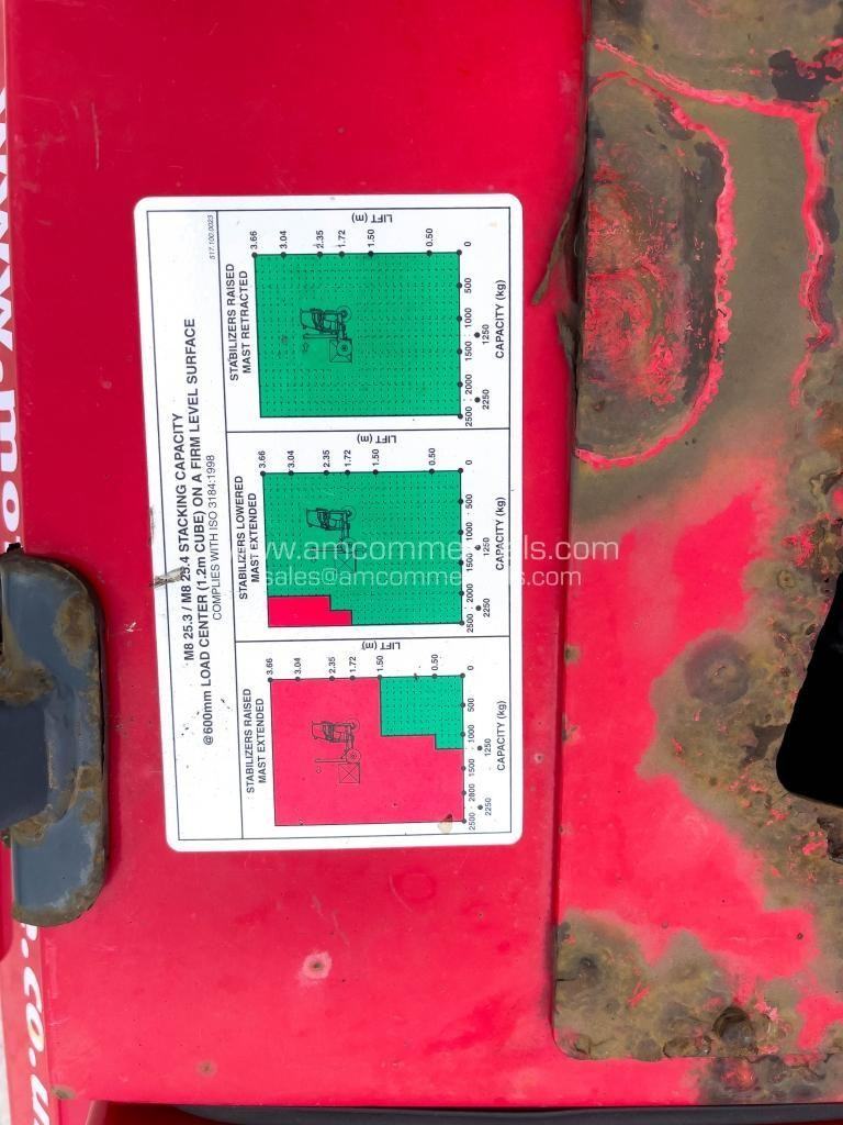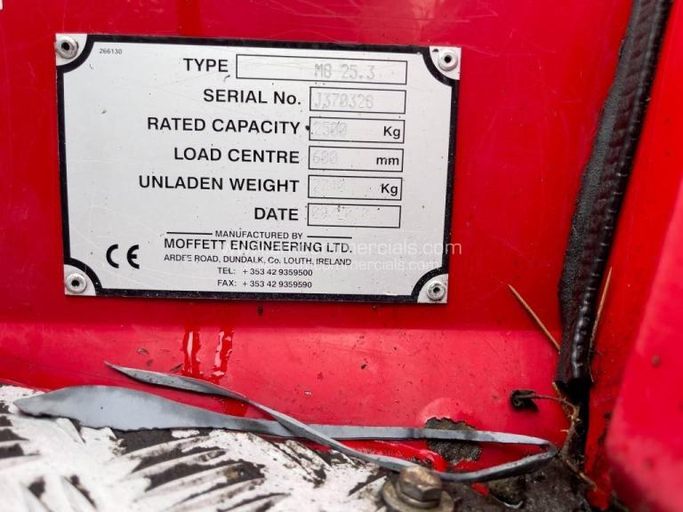 2010 Moffett M8 25.3 - 853.5 Hours, Max Lifting Capacity 2500Kg, Front Hydraulic Stabiliser Jacks, Tilting Mast, Front Mounted Work Lights. Excellent Condition.