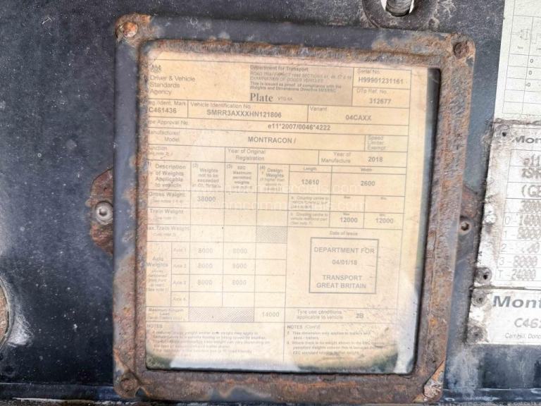 2018 Montracon Multi Temp Tri Axle Fridge Trailer, Rear Barn Doors, Aluminium Floor, BPW Axles, Drum Brakes, Thermo King SLXi Motor, 15,982 hours, Side Guards, Jost Landing Legs, Three Rows of Recessed Rail, MOT 30th September 2026.