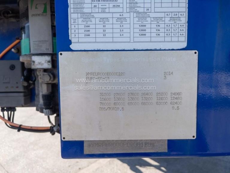 2014 Nooteboom Euro-60-03 Low Bed Loader Trailer 60,000KG GVW. Detachable Hydraulic Gooseneck with Raise/Lower Function, 3 Axle SAF Power-Steered Axles on Hydro-Pneumatic Suspension, Hardwood Deck with Steel Perimeter Frame, Swing-Out Outriggers, Heavy Duty Lashing Points, WABCO Air Braking System with ABS, 3.5” Kingpin, 24V Electrical System. Clean and Straight Trailer. Finance Available subject to status.