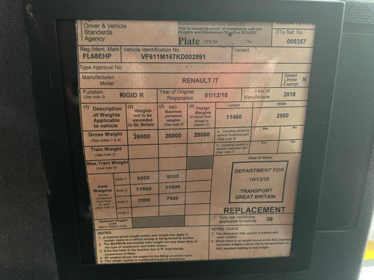 Posting for 3+ yearsRENAULT T380 *EURO 6*, 26 TONNE 6X2 CURTAINSIDER - 2018 - FL68 EHP