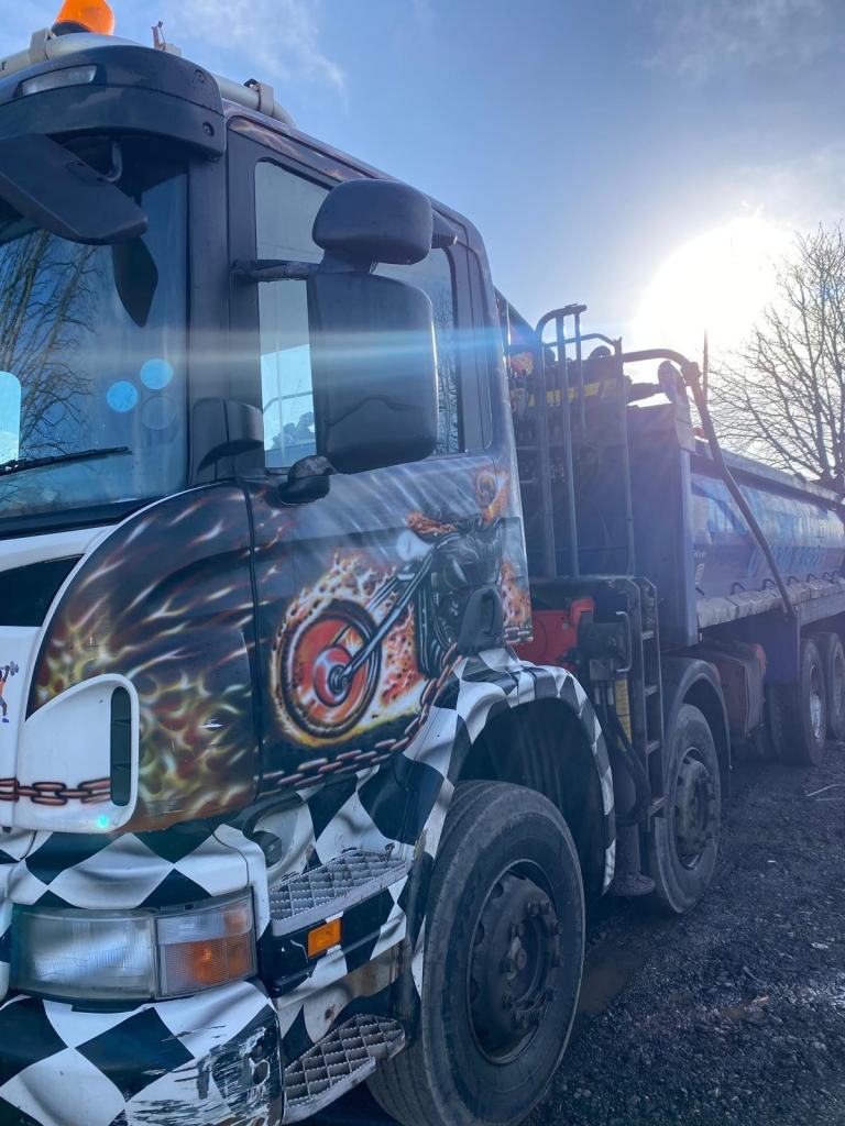 Scania 32ton grab truck with eplison crain steel suspension runes and drives we’ll fantastic spray job well maintained manual gear box Crain works as it should can deliver to any port in the Uk for additional cost [Phone number removed]