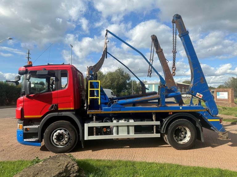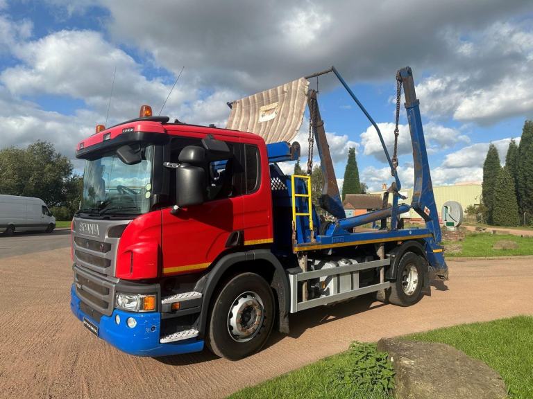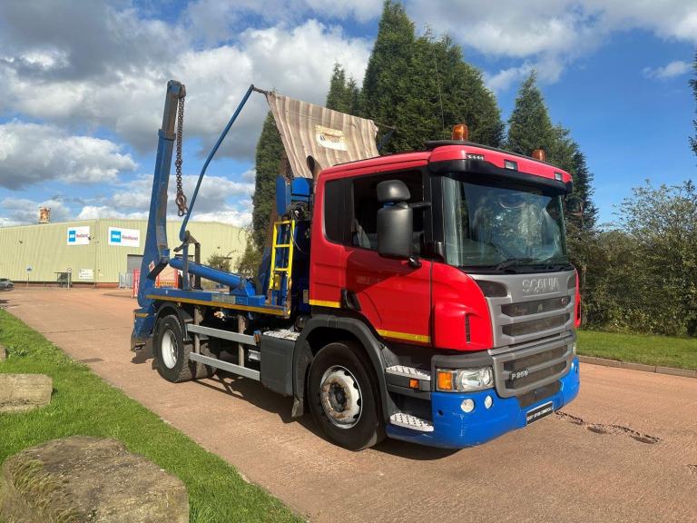 SCANIA P250 2016 EURO 6, 18 TON SKIP LOADER, HYVALIFT EXTENDABLE EQUIPMENT, SHEET, HYVA AUTO SHEET, 8 SPEED MANUAL GEARBOX, CRUISE CONTROL, SUN VISOR, UPRIGHT EXHAUST, TOOL BOX, BEACONS, STEERING WHEEL CONTROLS, ELECTRIC WINDOWS / MIRRORS, CD, 285,000 MILES.