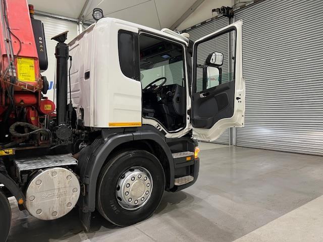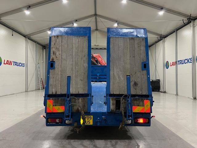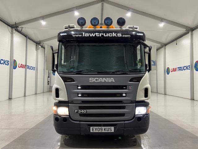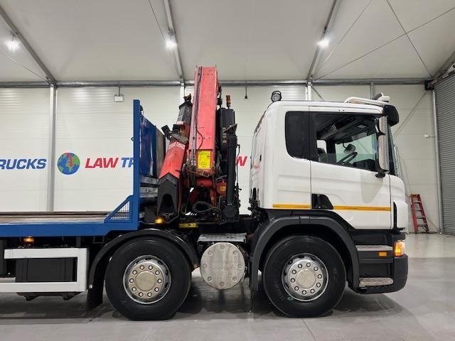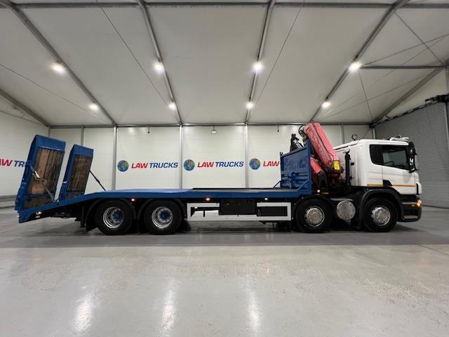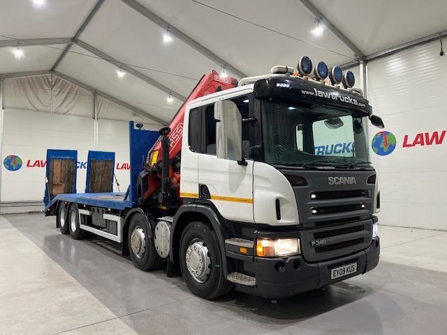 2009 Scania P340 8x2 12 Tyre Rear Lift Beavertail Flatbed with Crane.